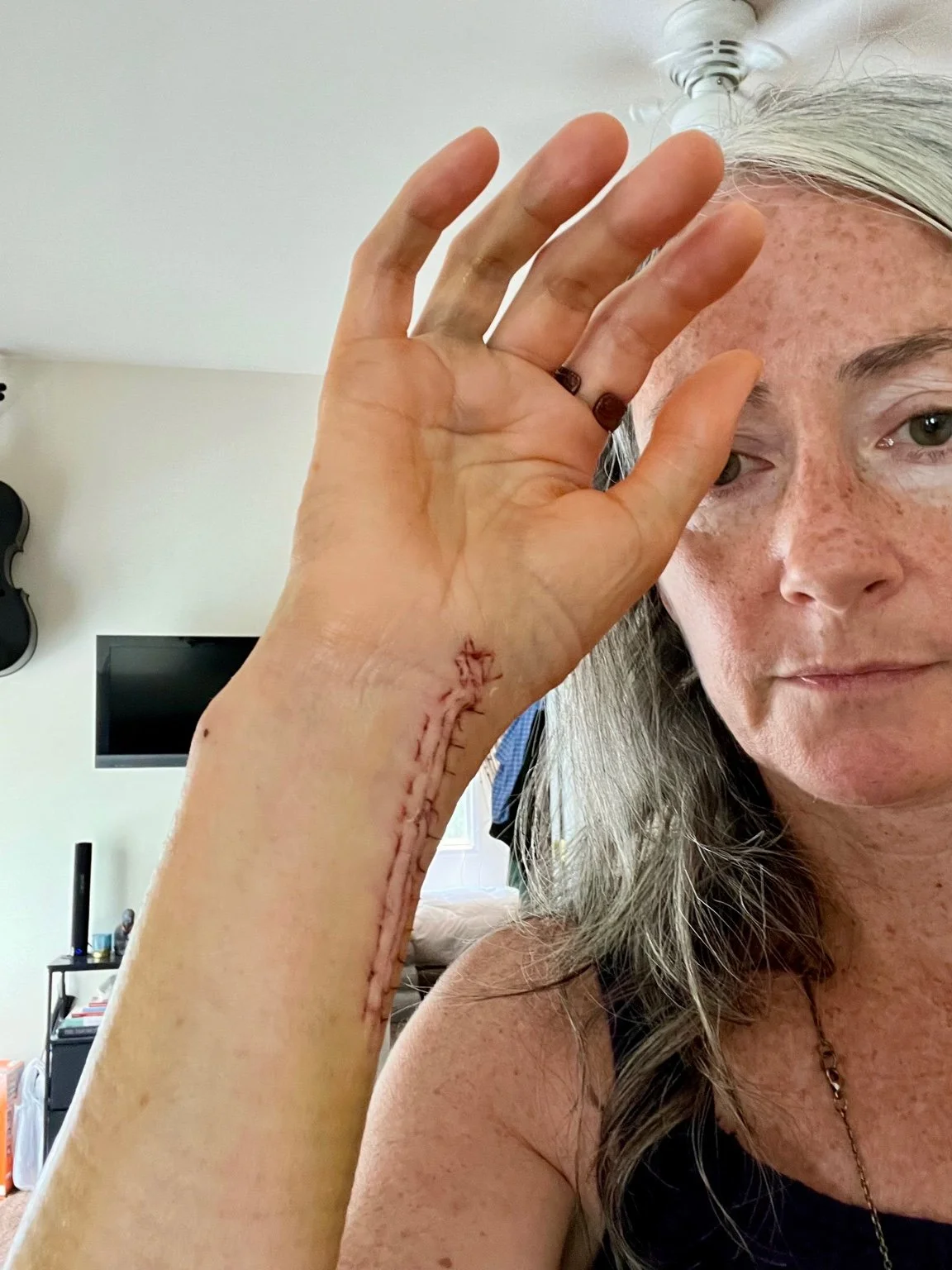 The next image shows my surgical incision and stitches. If you’re sensitive to medical visuals, feel free to skip to the next section.