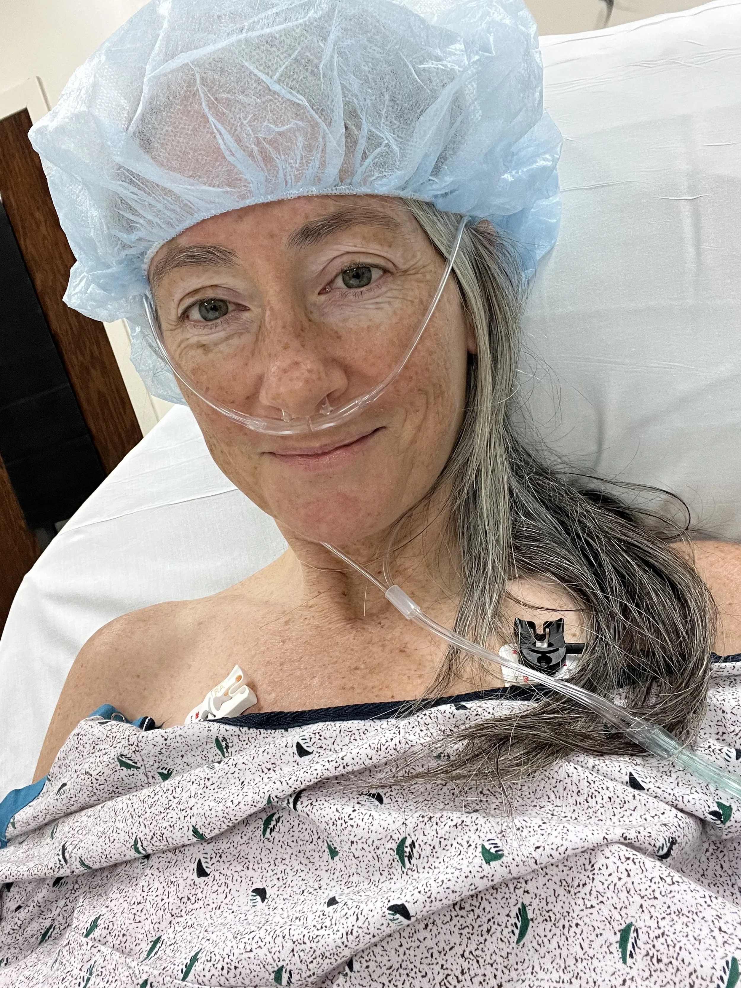 Taking a deep breath and leaning into trust. This was taken just before being wheeled into surgery.